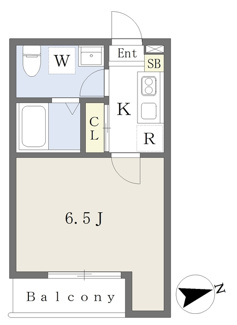 1K K 1.0帖/洋室 6.5帖 |